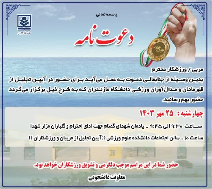 آیین تجلیل از قهرمانان و مدالآوران ورزشی دانشگاه مازندران