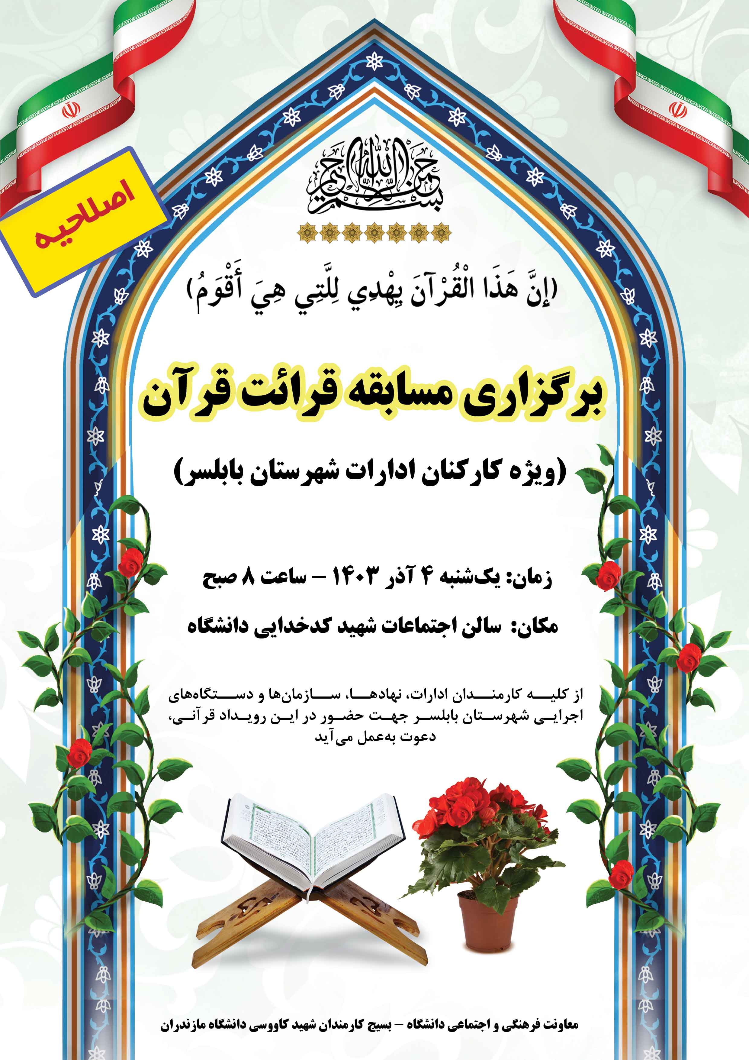 برگزاری مسابقه قرائت قرآن ویژه کارکنان ادارات شهرستان بابلسر - دانشگاه مازندران