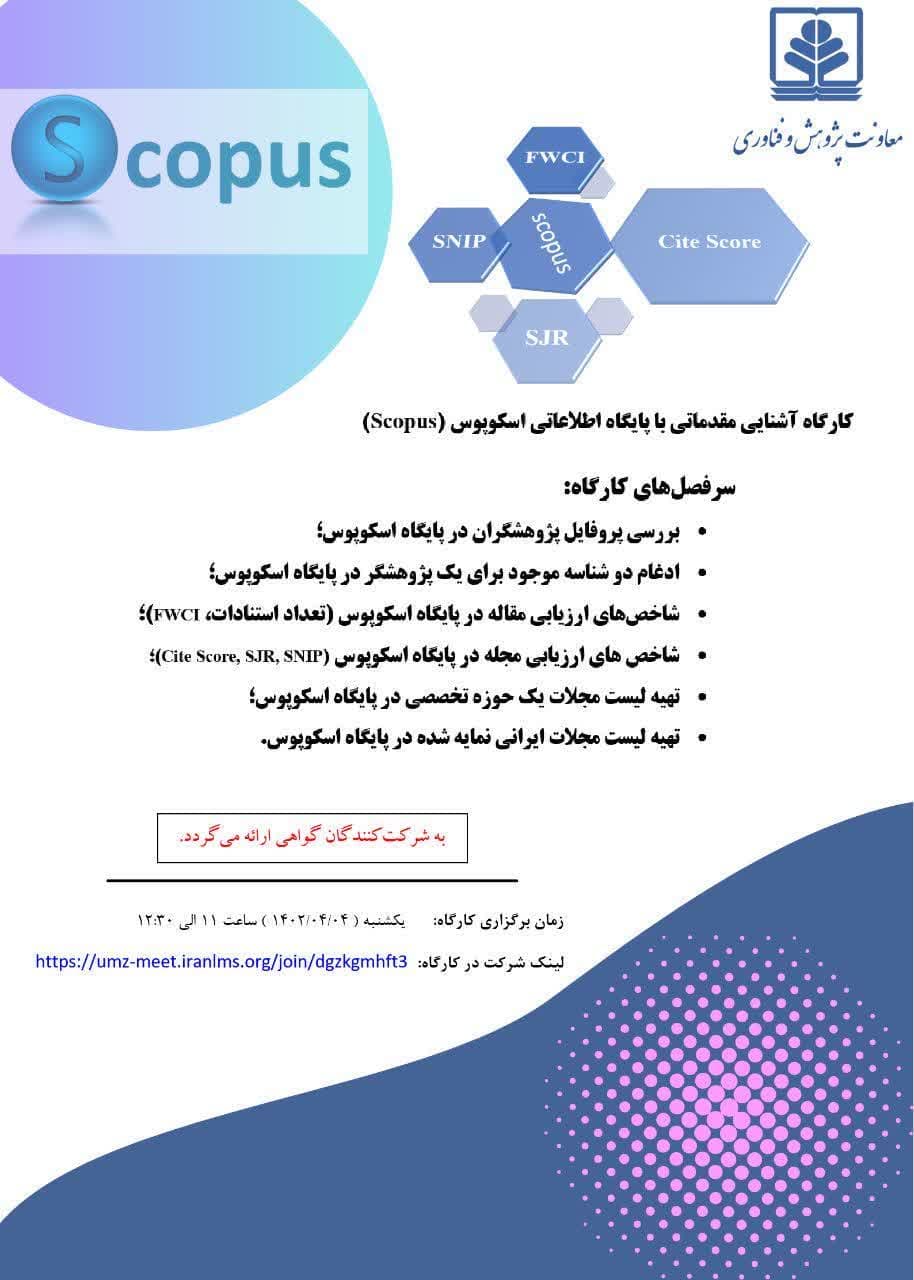 کارگاه مجازی علم سنجی «آشنایی مقدماتی با پایگاه استنادی اسکوپوس» - دانشگاه مازندران