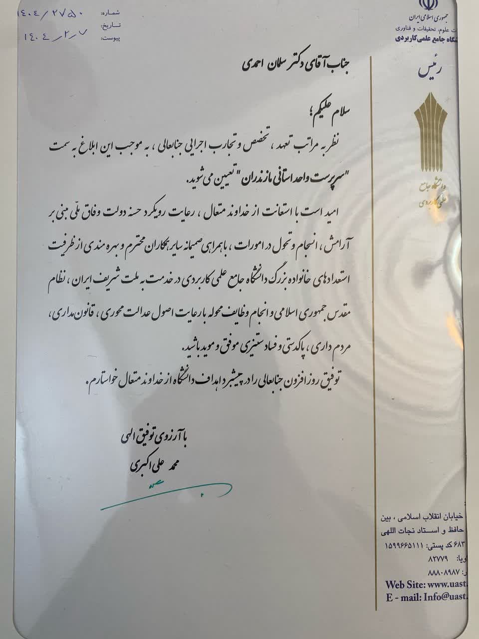 از سوی رییس دانشگاه جامع علمی کاربردی کشور:
